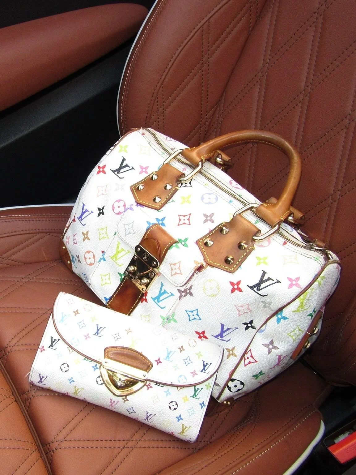 Material: distressed lambskin leather with gold hardware. Comes with shoulder strap.