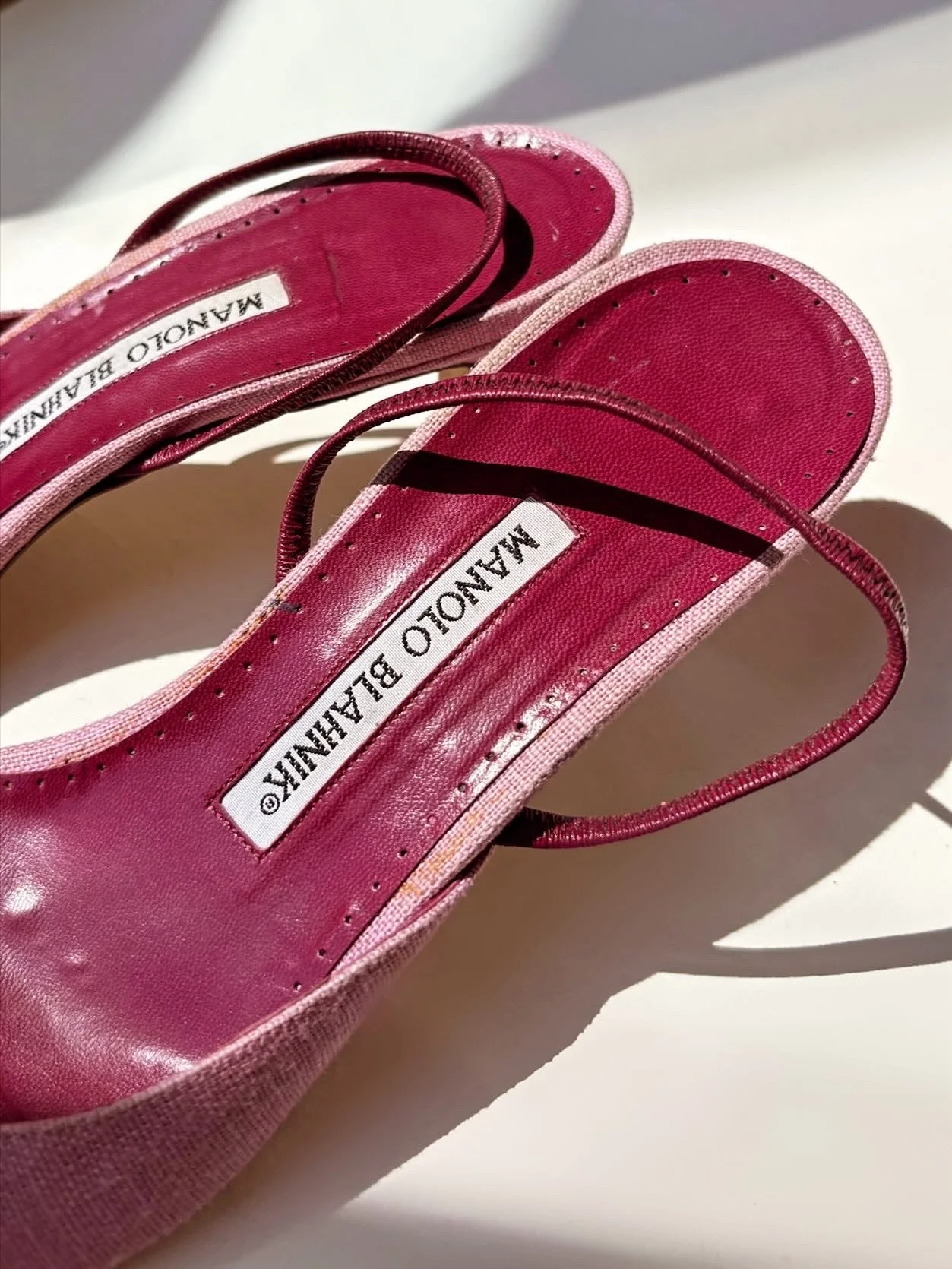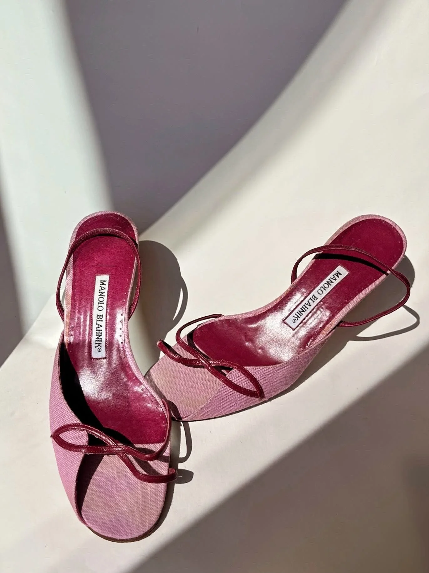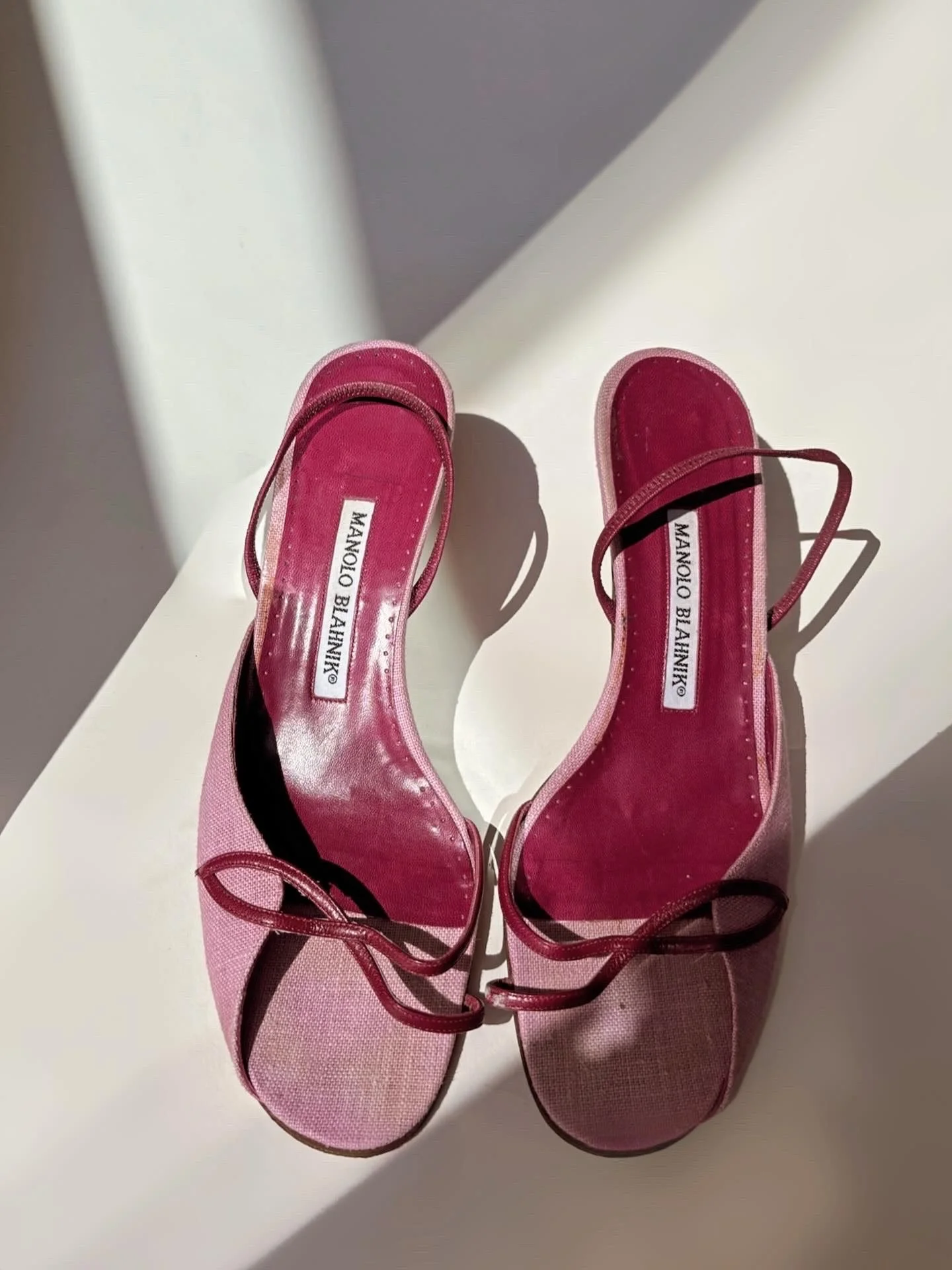 Early-2000s Prada mules featuring a pointed toe, sculpted heel, and signature buckle detail. A refined neutral tone that pairs effortlessly with denim or a slip dress, the perfect mix of understated luxury and Y2K elegance.
