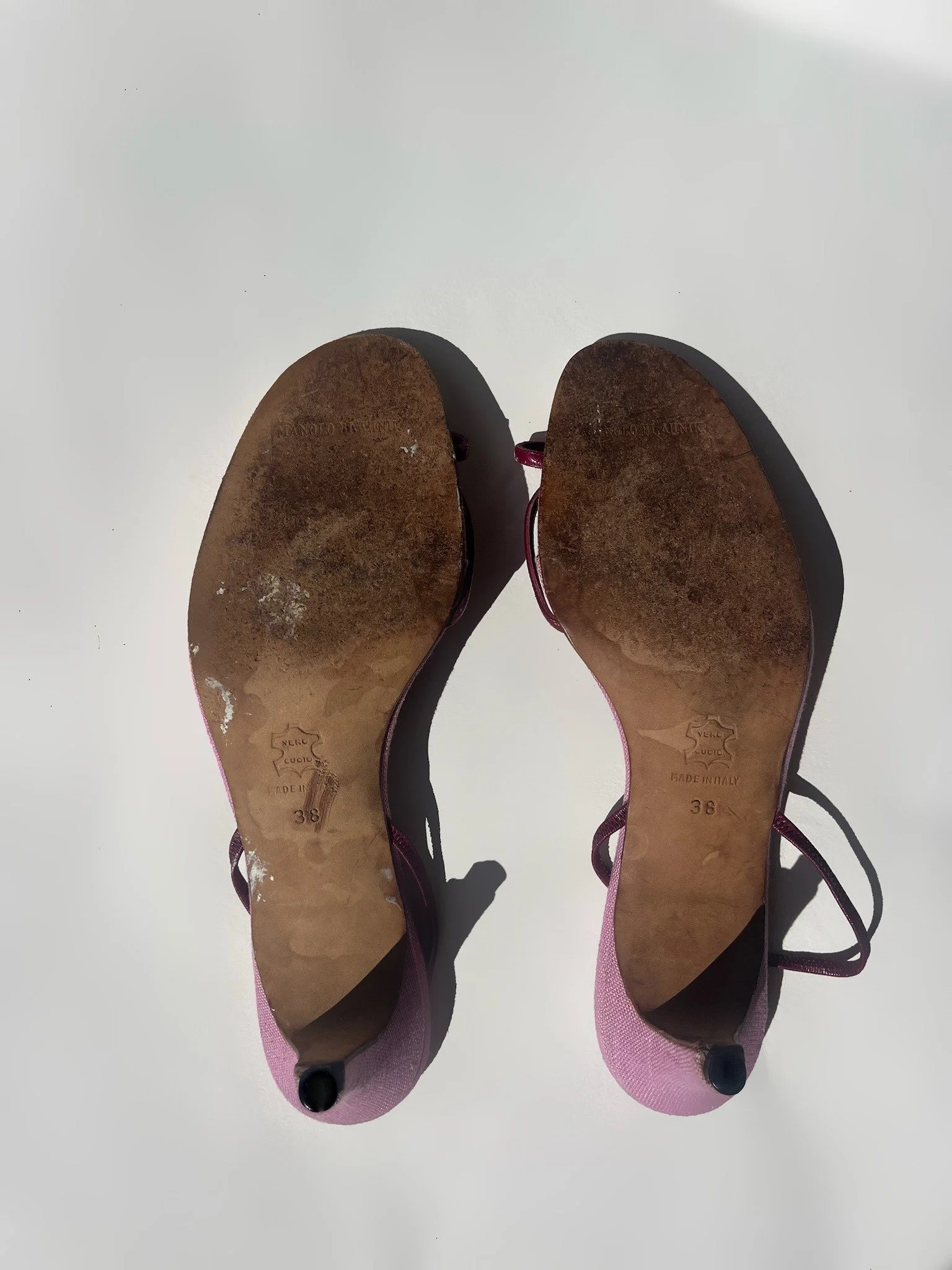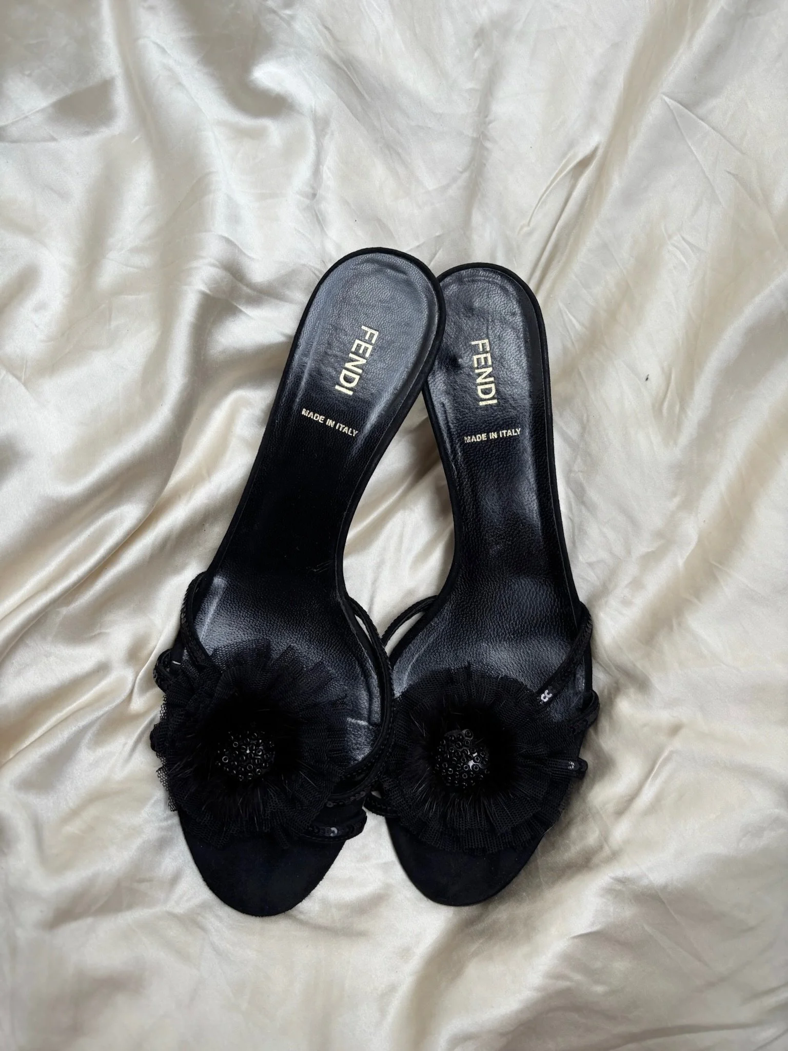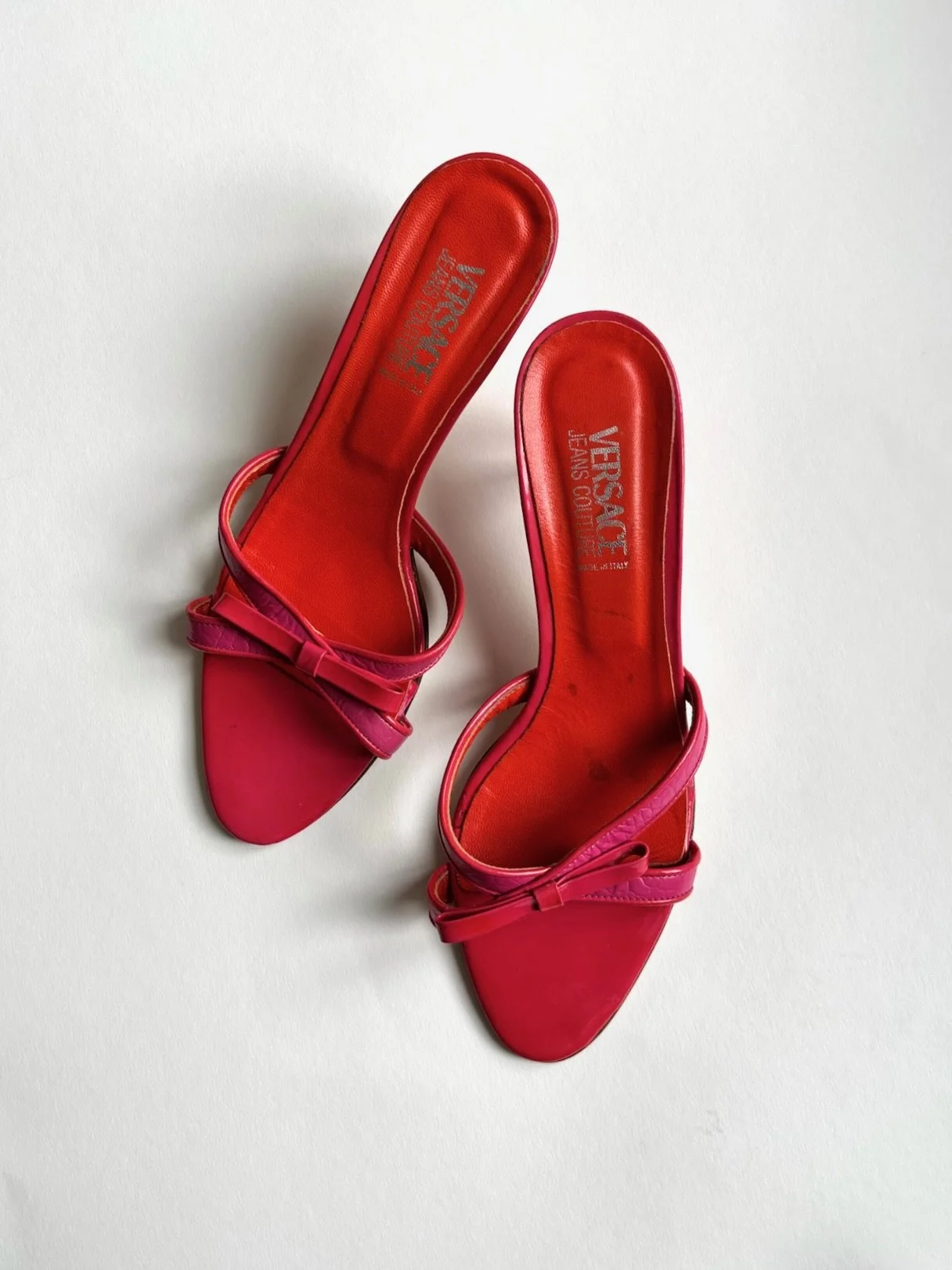 Early-2000s Prada mules featuring a pointed toe, sculpted heel, and signature buckle detail. A refined neutral tone that pairs effortlessly with denim or a slip dress, the perfect mix of understated luxury and Y2K elegance.